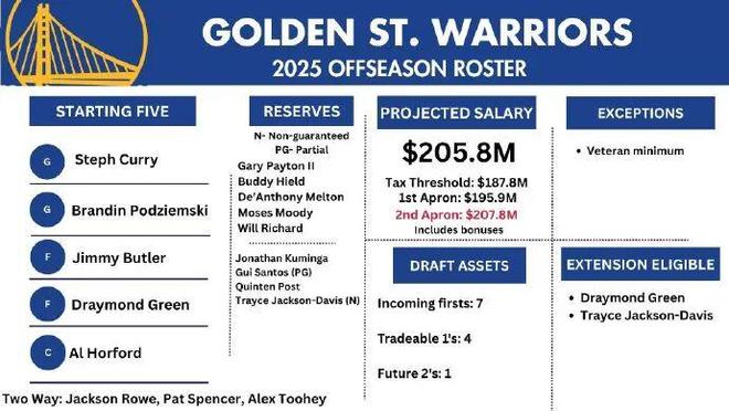 这类合同为非保障性质,不计入工资帽,勇士必须在在常规赛开始前裁掉他。